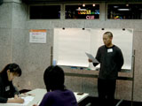 発表後は受講生1人の長所・短所を他の受講生によって発見し合うというものでした。これにより、自分が意識していなかった自分を発見し、短所は謙虚に受けとめ、長所を伸ばしていくことで、自分の表現を広げていき、理想像に近づく近道を示していきました。