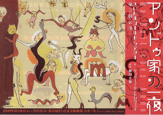 | 場 : 小ホールの中には馬蹄形の客席が、ステージを取り囲むようにコロシアムの様な状態に設えてある。開場した客席内に入ると、さいたまゴールド・シアターの方々約40人もの方々が既にステージに上がっており、それぞれに演出助手の方と台詞の確認をしていたり、動きの練習をしていたりと、賑やかというより喧騒状態である。この様子を見ているだけでも充分に面白い。さいたまゴールド・シアターの面々が実に生き生きと楽しそうなのだ。まずはのっけから圧倒された。 |