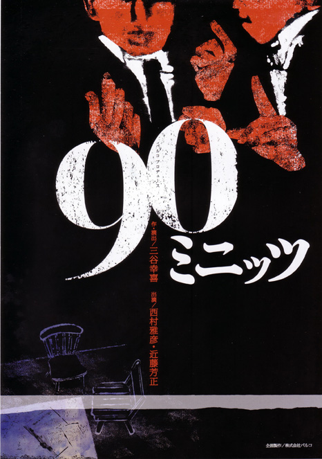 三谷幸喜は発表する作品ごとに、新たにチャレンジするテーマを自ら設定していくが、本作は題名に堂々と謳っているように、「90ミニッツ」という時間内で物語が完結するという命題に取り組むことになる。キャストも同様であるため、「笑の大学」に倣った構成で展開されるのかと思いきや、一度も暗転を挟むことなく、90分ノンストップで舞台は進行していく。西村雅彦と近藤芳正は、一度も舞台を外れることがない。