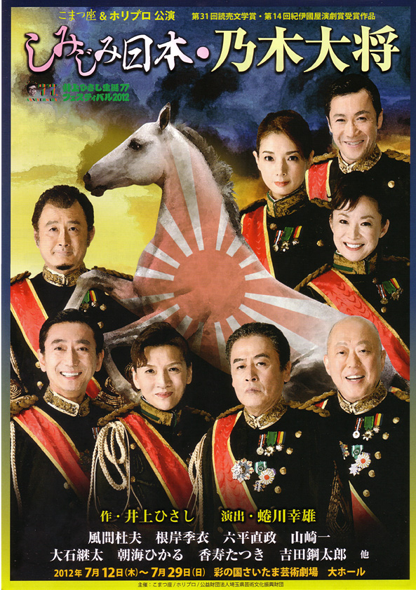 蜷川演出はいつもの外連味ある仕掛けに拠ることなく、孤高に輝く戯曲を、信頼出来る俳優陣にしっかりと委ね、井上ひさしが描きたかった世界を正確に現出させることに集中している。力量ある役者の肩の力の抜き加減が絶妙で、笑いを振り撒きながらも、乃木将軍の心根の奥底を探っていくことになる。何故、乃木将軍は明治天皇が大葬の日の夕刻に殉死したのかと。