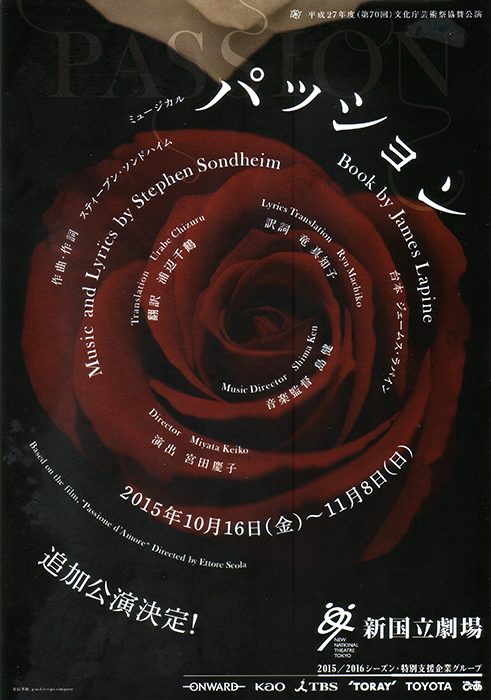 1980年に上映されたイタリア=フランス合作映画「パッション・ダモーレ」を原典とした本作「パッション」は、1994年にブロードウェイで初演を迎えている。実はこの「パッション」、とても観たい演目だった。“あの”物語を一体どのように万人受けするミュージカルに仕立て上げたのか興味津々であり、しかも手掛けたのは、スティーブン・ソンドハイムだというのがその理由である。そして、トニー賞4部門受賞という栄誉まで奪取したとくれば、期待が高まらないわけがない。日本、初上演である。