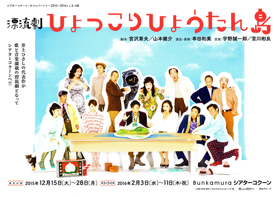 喜劇でも人間ドラマでも冒険活劇でもない、茫漠とした皆の記憶の中にある「ひょっこりひょうたん島」がムクムクと立ち上がっていく。登場人物たちはそれぞれに存在感はあるのだが、何故か実在感がないのだ。物語だけではなく、人々の心も、まさに“漂流”していると言えるであろう。見事なのがその演出家の意を汲み、そこはかとなくカリカチュアライズして役柄をふくよかに造形した俳優陣だ。