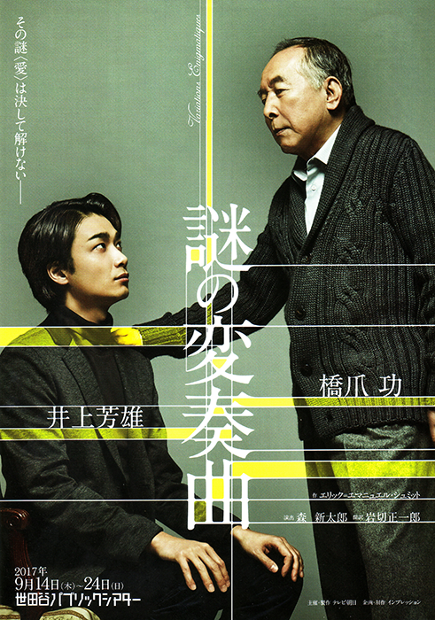 細かな布石が其処此処に仕込まれた戯曲を、ごく自然な出来事のように見せ続ける技がなければ成立しないホンであるが、薄皮を剥いでいくように真実が露見していくミステリアスな展開にリアルさを与えていくのは、橋爪功と井上芳雄に他ならない。