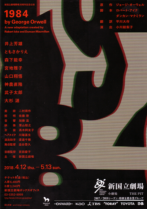 幕開きは、小説「1984」と、その巻末に据えられた“附録”「ニュースピークの諸原理」について考察する人々が現出する。時代設定はいつなのであろうか。2050年以降であると推定される。しかし、この“附録”がきちんとフューチャーされることで、「1984」の世界は1984年の時代に留まることなく未来の視点を獲得し、2018年に向けて照射される。1984年と2050年以降の世界が地続きとなり、全体主義国家が跋扈する恐怖が観る者に沁み込んでくる。あれ、この恐怖は時代を問わずいつの世にも蔓延っているのではないかと、冒頭より感じ入ることになる。