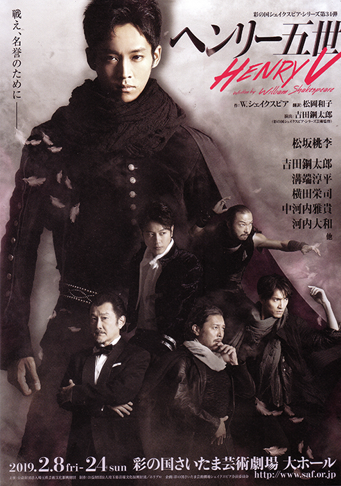 2013年に上演された蜷川幸雄演出の「ヘンリー四世」のスピリッツを受け継ぎ、ハル王子を演じた松坂桃李がタイトルロールの「ヘンリー五世」へと臨むことになった。演出は前作でフォルスタッフを担った吉田鋼太郎。自身もコーラス(説明役)として登壇する。