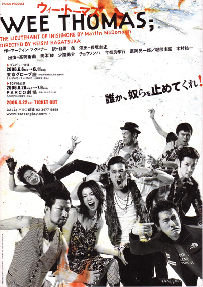 人の血がたくさん流れる芝居である。登場人物の半分が殺されていく。しかし、何処かあっけらかんとしたユーモアが全編を包み込み、深刻の深みにはまることはない。作者マーティン・マクドーナーは、アイルランドという土地にしっかりと根付いた「闘い」の歴史をDNAに沁み込ませた、かつての戦士たちの末裔を例に取り、切っても決して切れることのない暴力の連鎖というものを、達観して高笑いしているかのような爽快さすら感じさせるのだ。