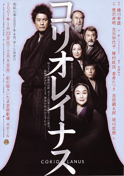 コリオレイナス演じる唐沢寿明は、気位の高い貴族のプライドと、連戦続きの豪腕な武将の意思と、母を慕い敬う子供の心情を交錯させ、複雑な人間心理を描き出し圧巻である。物語の中心に立ち、民衆を含めた回りの登場人物全てを巻き込み翻弄していく様は、最期のその時まで、誰よりも一番、強靭であり、孤高でもあった。母を演じる白石加代子もまた見事。男なら戦場で死しても本望だと謳うマグマのような炎が終始立ち込め、戦勝武将の息子がひれ伏すに十分な迫力と母性を放射している。勝村政信演じる変わり身の早い狡猾な武将の、コリオレイナスに対する愛憎が入り混じった心理描写も面白い。吉田鋼太郎の憂うる苦悩や、瑳川哲朗の浅薄な扇動や、香寿たつきの思い詰めた寡黙さなども、物語の流れの中で、クッキリと浮かび上がってくる。