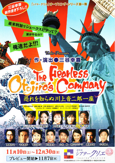 下手の緞帳前に用意されていた演壇に堺正章が登場して舞台は幕を開ける。まず、そこで拍手がおきる。そして、講談師のように川上音二郎のプロフィールを語っていく。緞帳が開いた舞台上では、映画館のスクリーンのように上下左右に黒幕を張った状態の中で、登場人物たちが無声映画の役者たちのようにコマ落としのようなセカセカしたテンポでことの次第を演じていく。川上音二郎が渡米するまでの経緯が一気に語られ物語は始まった。