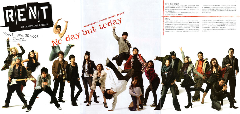 新しい何かを期待していた。開場時の舞台上の美術を見て、その期待に応えてくれるかと感じたのだが、結果、新鮮な驚きを得ることは出来なかった。この公演はミュージカルではないですね。コンサートであると思う。「RENT」のナンバーを繋いで歌っていくコンサート。そう思えば、納得もいくのであろうが、ここで語られる物語、作品そのものに魅かれ、そのテキストやナンバーをどう活かして魅せてくれるのかを期待して行ったので、全くもって腰砕け状態であった。